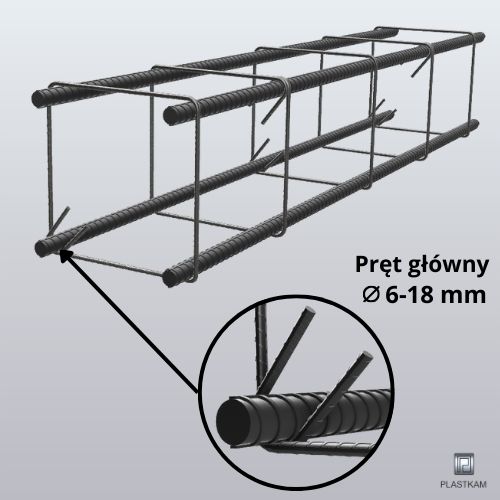Promień gięcia strzemion idealnie pasuje do średnicy prętów. Dzięki temu belki zbrojeniowe tworzą mocną i stabilną konstrukcje.