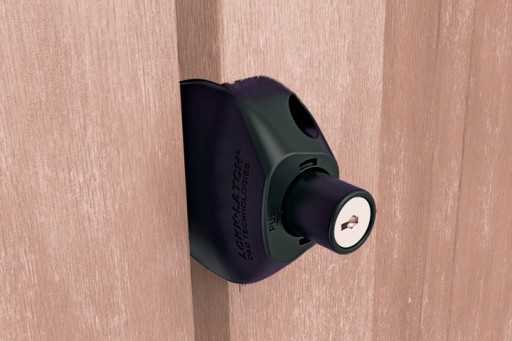 Zamek D&D do bram z drewna, bram z metalu oraz tworzywa, zatrzaskowy, dwustronny na kluczyk.