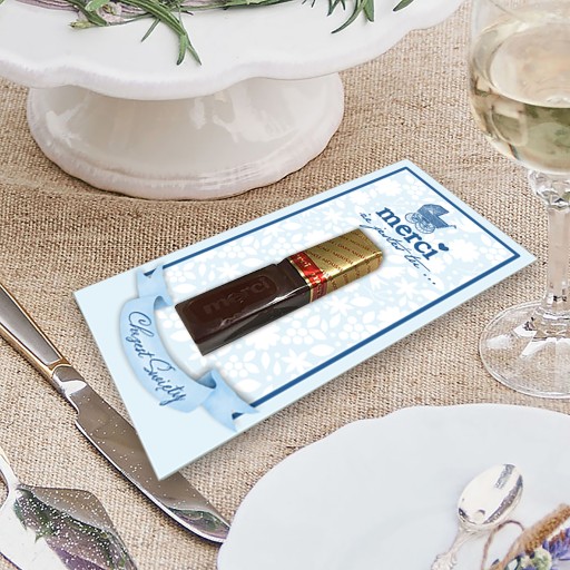 Oryginalny pomysł na podziękowanie w formie podkładki do czekoladek. Podziękowanie dla gości za przybycie na uroczystość przyjęcia Chrztu Świętego wykonane ze sztywnego białego papieru z precyzyjnym drukiem cyfrowym w pastelowych odcieniach.