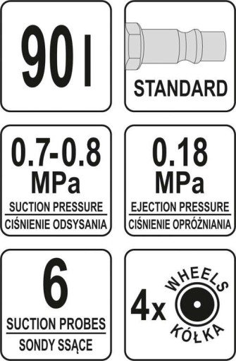 - ciśnienie odsysania: 0.7-0.8 MPa