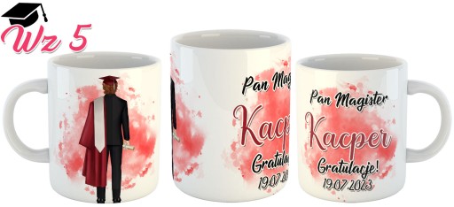 ELEGANCKI KUBEK Z NADRUKIEM z GRATULACJAMI DLA MAGISTRA lub INŻYNIERA + WŁASNA PERSONALIZACJA