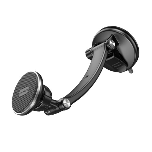 - Ten magnetyczny uchwyt na telefon, wyposażony jest w regulowane ramię o długości ok. 22.5 cm, mocowany do deski rozdzielczej lub konsoli centralnej pojazdu za pomocą silikonowej przyssawki z klejem, posiadający powierzchnię magnetycznego mocowania o średnicy ok. 5 cm.