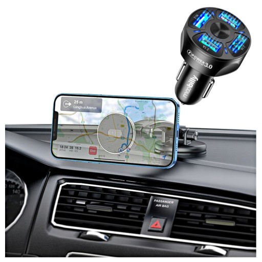 Zestaw podróżny Moobilly Uchwyt samochodowy magnetyczny na szybę i deskę rozdzielczą + Ładowarka Samochodowa 4x USB