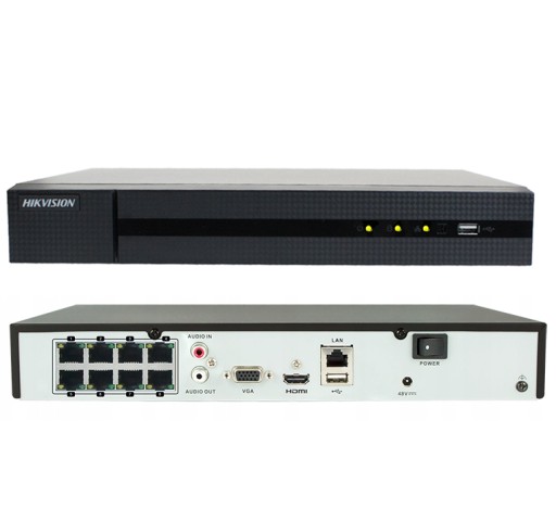 - 1x rejestrator 8-kanałowy Hikvision Hiwatch HWN-4108MH-8P(B) z wbudowanym zasilaczem PoE, zdalną pracą w chmurze oraz możliwością nagrywania obrazu do 4K @8Mpx