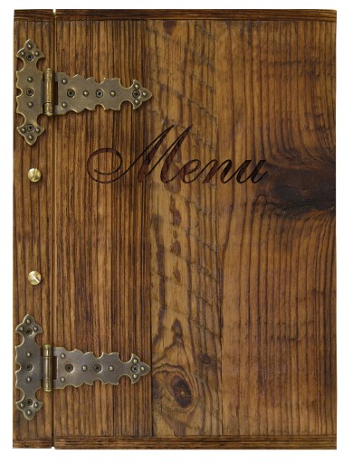 КАРТОЧКА-МЕНЮ А4 ИЗ СТАРОГО ДЕРЕВА, ОБЛОЖКА С ФУРНИТУРОЙ