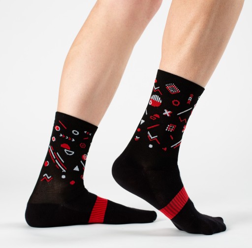 SKARPETKI KOLARSKIE, CZARNE, WZORKI CZERWONE 41-43