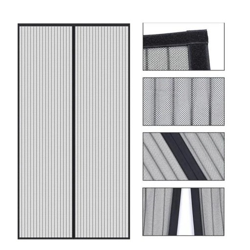 Dwuczęściowa moskitiera, stanowi skuteczną ochronę pomieszczeń przed insektami. Wyposażona w magnesy, umożliwiające łatwe otwieranie i zamykanie. Odpowiednia do drzwi pojedynczych, przesuwnych, balkonowych, drzwi kamperów, itp. Umożliwia zwierzętom swobodne wchodzenie i wychodzenie. Łatwa w montażu - mocowanie na pinezki (dołączone do zestawu). Moskitiera wykonana z wytrzymałego materiału poliestrowego. Przejrzysta, nie zaciemnia pomieszczeń.