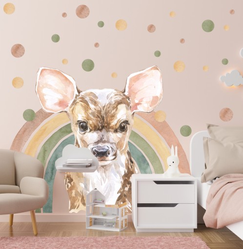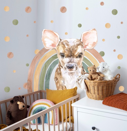 W skład zestawu wchodzą: konfetti w 4 rozmiarach 2 - 7cm x 112szt. Naklejka konfetti powstała jako uzupełnienie kolekcji naklejek na ścianę królik, tęcza akwarela. Komplet będzie pasował do sarenki oraz liska