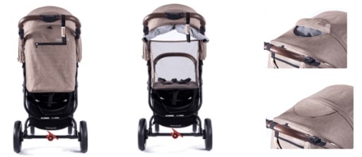 Komfortowe warunki na czas spaceru zapewnia obszerna i rozszerzana budka, która składa się aż z czterech rozkładanych paneli. Pozwala ona uzyskać naprawdę głęboką osłonę dziecka przed niekorzystnymi warunkami atmosferycznymi. Jeden panel budki zawiera dodatkowo okienko typu peekaboo do obserwacji dziecka w wózku.