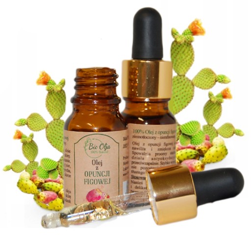 100% naturalny, tłoczony na zimno, nierafinowany olej klasy premium z pestek OPUNCJI FIGOWEJ 10 ml w butelce z wygodnym aplikatorem w postaci pipety.