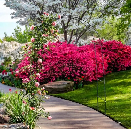 Jest podporą dla roślin pnących takich jak róże, powojniki, wiciokrzewy, bluszcze, ale także dla groszku, winogron itp.