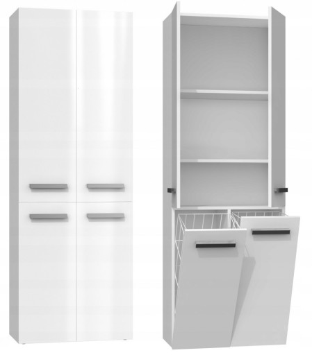 SZAFKA ŁAZIENKOWA ULA DD 2K KOSZE 60CM BIEL POŁYSK