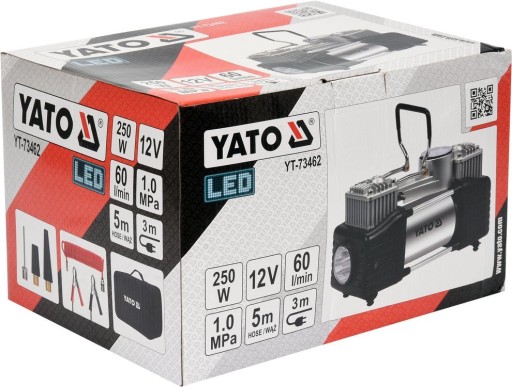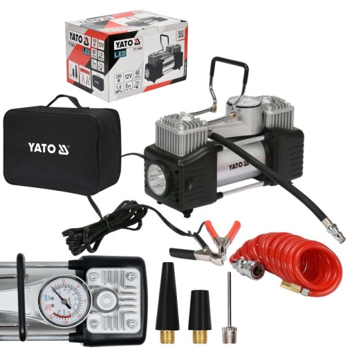 АВТОМОБИЛЬНЫЙ КОМПРЕССОР YATO С МАНОМЕТРОМ НАСОС-КОМПРЕССОР 12В 250ВТ