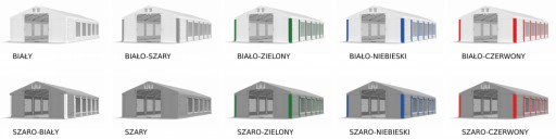 Namioty składane są z modułów o długości 2, 4, 6, 8, 10 lub 12 m oraz 1, 2-metrowych przedłużeń.