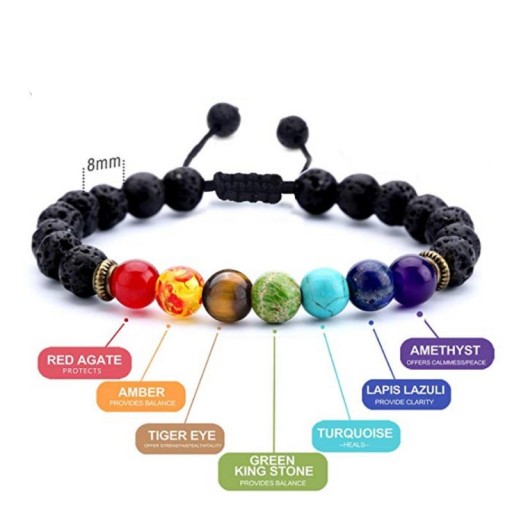 Harmonizacja wszystkich czakr pomaga w pełni zrealizować się we wszystkich sferach życia, osiągnąć niezbędne cele, być zdrowym i szczęśliwym. Unikalna bransoletka zawiera wszystkie 7 czakr, aby zrównoważyć każdy ważny obszar życia i kamienie lawy, które pomagają zmniejszyć stres i rozproszyć gniew.