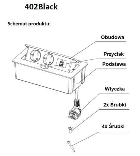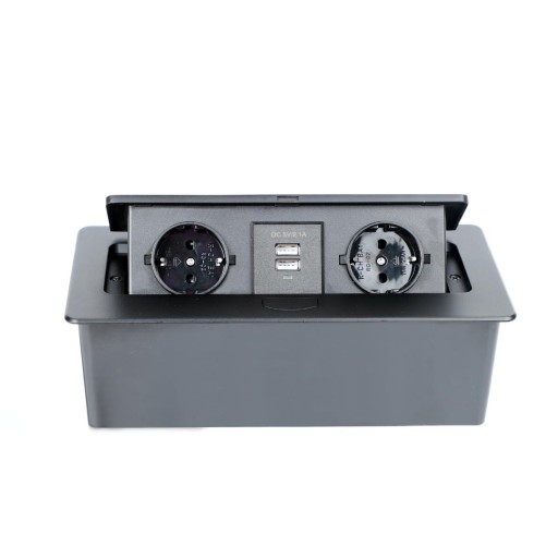 Schild 402black Gniazdo nablatowe chowane w blat elektryczne wpuszczane, listwa elektryczna, przedłużacz, podblatowe, otwierane 2x 230V 2xUSB szybkie- porządne- ze stopu cynku i aluminium
