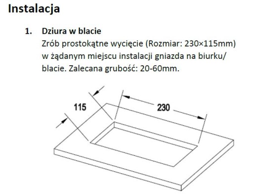 - Rozmiar otworu montażowego: 230 x 115mm