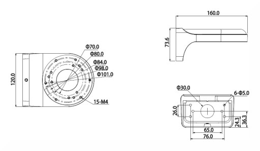 Można montować na nim kamery wandaloodporne. Posiada bardzo przydatną możliwość ukrycia kabli i złącz wychodzących z kamery.