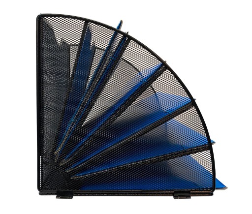 Oryginalny kształt: Dzięki temu oryginalnemu kształtowi wachlarza, organizator doskonale wykorzystuje przestrzeń na biurku, a jednocześnie prezentuje się estetycznie.