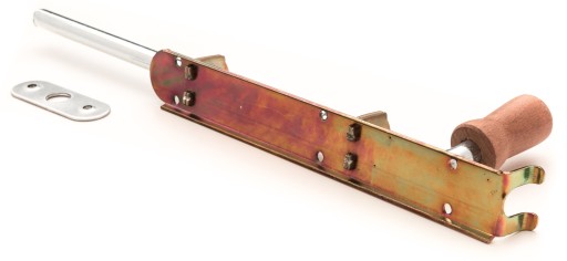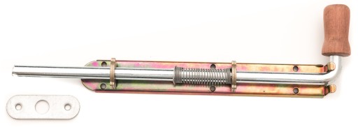 Zasuwa metalowa ocynkowana. Najczęściej wykorzystywana jako blokada skrzydła drzwi lub bramy.