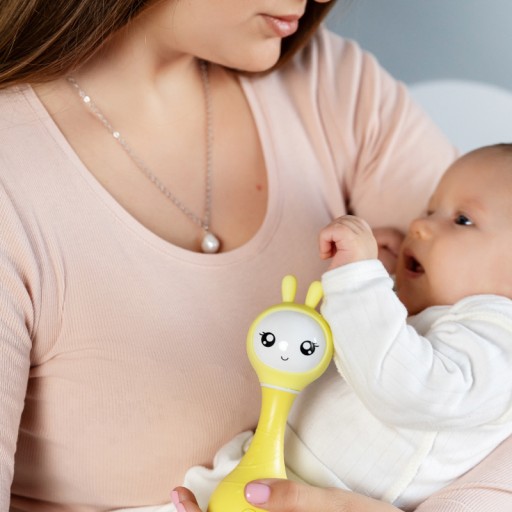 Alilo Smarty Bunny - jest inteligentną, elektroniczną grzechotką z odtwarzaczem muzyki i identyfikatorem kolorów.