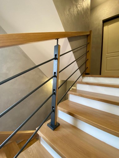 Oferowana balustrada model ND2 od Alleschody idealnie pasuje do nowoczesnych wnętrz w różnych stylach. Połączenie drewna z okuciem malowanych w RALu stanowi bardzo modne i efektowne połączenie.
