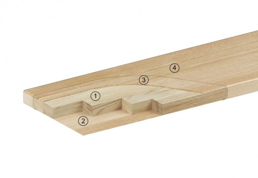 1. Rdzeń stopnia - klejonka z drewna łączonego wzdłużnie (na mikrowczepy) i poprzecznie ( taki sam gatunek drewna w całym przekroju stopnia)