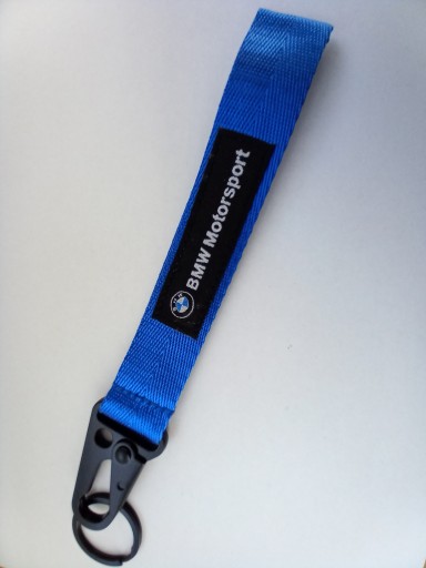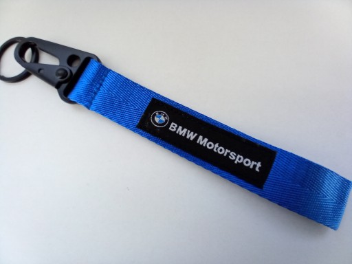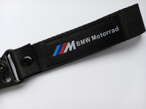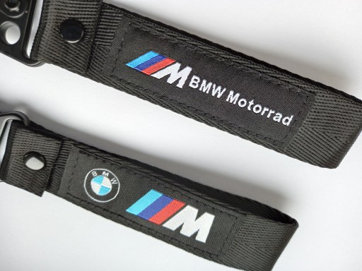 Mała zgrabna czarna smycz, smyczka, brelok do kluczy BMW M. Smyczka posiada z obydwu stron naszywki; BMW M oraz One Worl One jak na poniższych trzech fotografiach. Idealny pomysł na praktyczny i trwały prezent dla miłośnika; marki, motocyklingu, rajdów, wyścigów i rasowej motoryzacji. Na innych aukcjach oferujemy również smycze i breloki w innych kolorach oraz markach co pokazano na dalszych fotografiach.