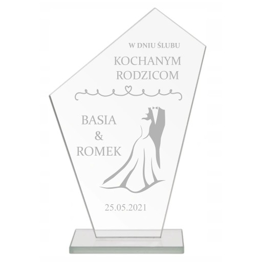 Podaruj im elegancką szklaną statuetkę z PODZIĘKOWANIEM DLA RODZICÓW ze spersonalizowanym tekstem!