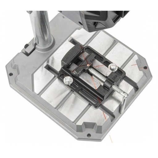 Wiertarka posiada stabilny, mocny i regulowany stół roboczy oraz imadło maszynowe.