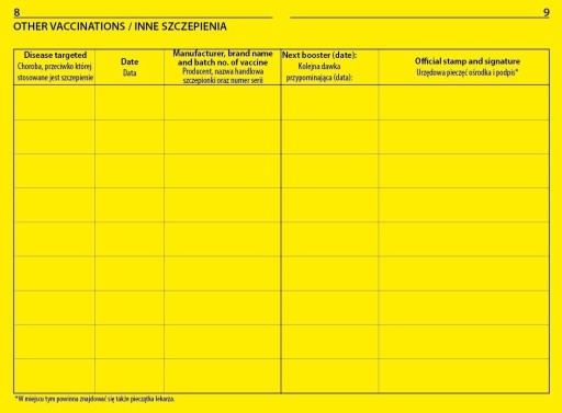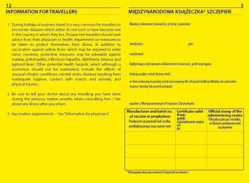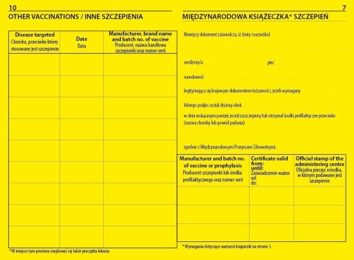 Żółta - Międzynarodowa Książeczka Szczepień. Dokumentacja przed podróżą
