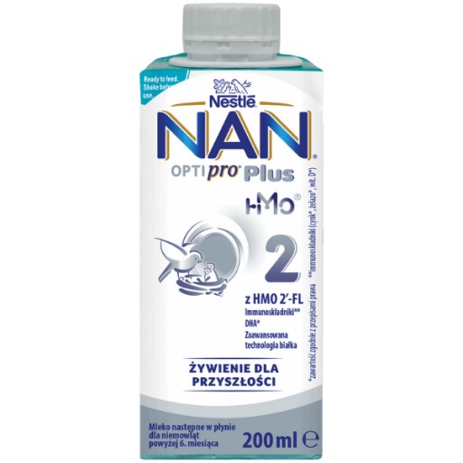 Nan Optipro Plus 2 HM-O to mleko następne w płynie do karmienia niemowląt , które ukończyły 6. miesiąca życia. Wskazane dla dzieci, które z różnych powodów nie mogą być karmione piersią.