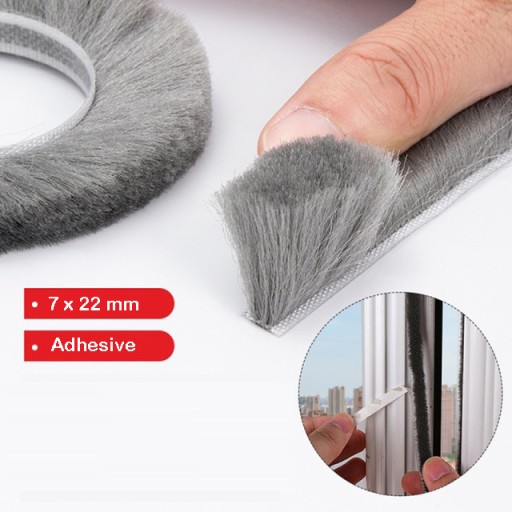 Отбойная щетка, уплотнитель шкафа 7х22 мм, КЛЕЙ 5 м