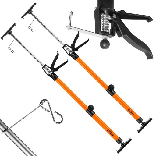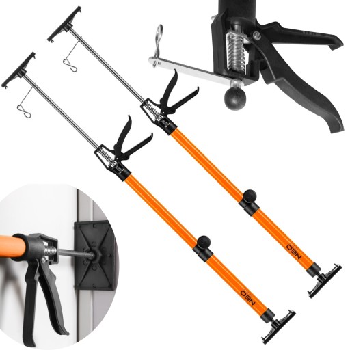 Podpora teleskopowa 50-115 cm 35-433 marki NEO to narzędzie przydatne do wspierania elementów budowlanych i konstrukcyjnych z maksymalnym obciążeniem 45 kg. Umożliwia wygodne mocowanie płyt gipsowo-kartonowych, służy także m.in. do rozpierania montowanych futryn. Podpora posiada regulowany zakres wysokości (od 50 do 115 cm). Została wyposażona w gumowe, antypoślizgowe stopki dla lepszej stabilizacji podparcia. Wygodna w użyciu, zaprojektowana z myślą o szybkim rozsuwaniu oraz z możliwością blokady dla zwiększonego bezpieczeństwa. Wytwarzana z trwałych materiałów, będzie narzędziem na wiele lat.