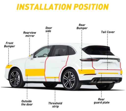 ✅ Taśma przede wszystkich pełni funkcje ochronne, zapobiega zarysowaniom różnych powierzchni auta i innych przedmiotów (listew, progów, drzwi, luster, bagażnika, ramy rowerowej, sprzętów i gadżetów)