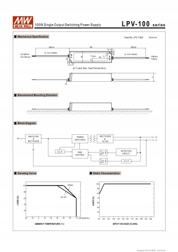Zasilacz LPV 12V 100W idealnie sprawdzi sie do zasilania w miejscu gdzie małą ilością przestrzeni a także chcemy zapewnić sobie niezawodność zasilania. Może to być zasilanie oświetlenia pokoju czy znacznie oddalonej reklamy bądź kasetonu. Ze względu na hermetyczna obudowę IP67 zasilacz ten można także stosować na zewnątrz. Idealne do domu, zasilania taśm LED czy modułów w kasetonach. LPV-100-12 to uniwersalny niezawodny i mały zasilacz o bardzo dobrym stosunku ceny do mocy a tymbardziej do niezawodności.