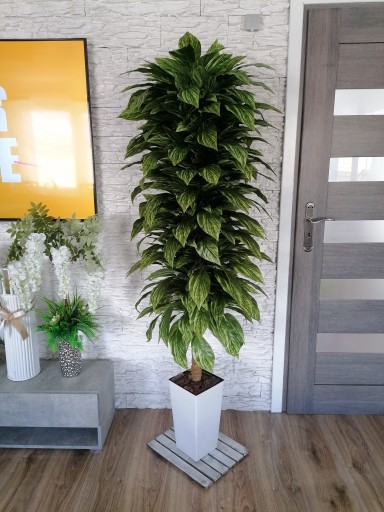 W sprzedaży drzewko sztuczne Fikus Figowiec wysokość z donicą max 180 cm. Kolor liści zielony cieniowany. Do wyboru biała lub czarna donica. Wysokość donicy z wkładem 36x19 szer. cm.Szerokość drzewka 50 cm.