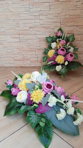 (cena dotyczy kompletu tylko kompozycji do postawienia na grobie, natomiast bukiet do wazonu dostępny na innej aukcji)