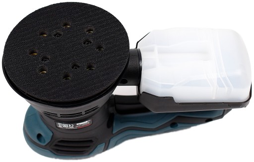 Urządzenie współpracuje z materiałem ściernym o średnicy 125mm z mocowaniem na rzep oraz ośmioma otworami odpylającymi.
