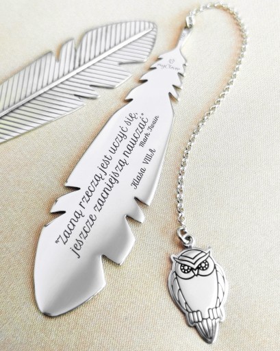 Na piórku z drugiej (gładkiej) strony możemy wygrawerować krótki tekst, sentencję - maksymalnie 2-3 zdania (około 140 znaków)