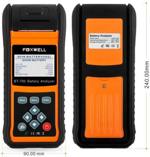 Aukcja dotyczy najnowszego samodzielnego testera akumulatorów Foxwell BT780 wyposażonym w wyświetlacz LCD oraz wbudowaną drukarkę raportów