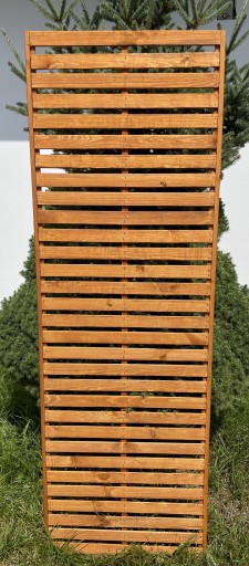 Nowoczesne płoty listwowe, malowane na rudo-pine , lamelka strugana