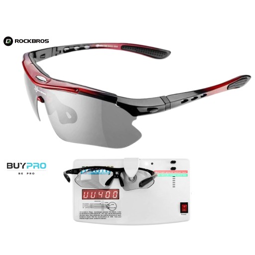 Okulary sportowe ROCKBROS model 10141 - wysokiej jakości szkła fotochromowe ochrona UV kolor czarno-czerwony