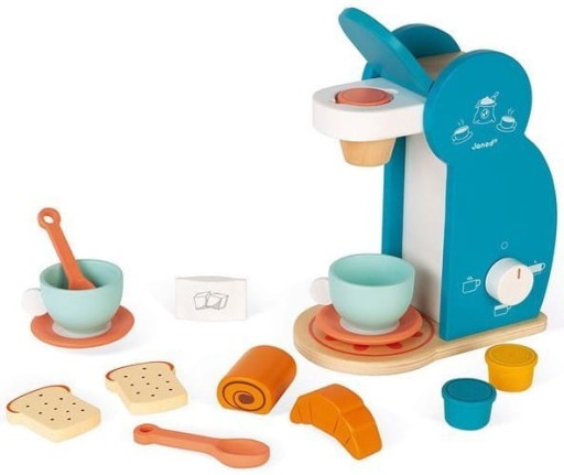 Drewniany ekspres do kawy francuskiej marki JANOD oraz 14 uroczych akcesoriów przydadzą się idealnie do zabawy w śniadanie.