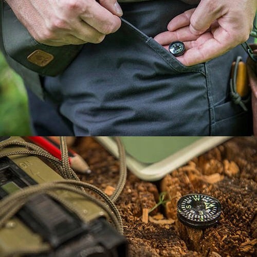 Kompas guzikowy HELIKON Button Large - minimalistyczny kompas turystyczny marki Helikon. Pozwala na szybkie określenie kierunków. Dzięki fosforyzującej tarczy wypełnionej płynem jest niezawodny nawet w nocy. Dzięki niewielkim rozmiarom może być przenoszony w każdym miejscu oporządzenia. Kompas jest nieco większy niż standardowy guzikowy - ma średnicę ok. 2cm.