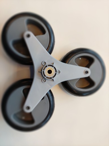 - System trzech kół na łożyskach ułatwia przemieszczanie się wózka po schodach i krawężnikach