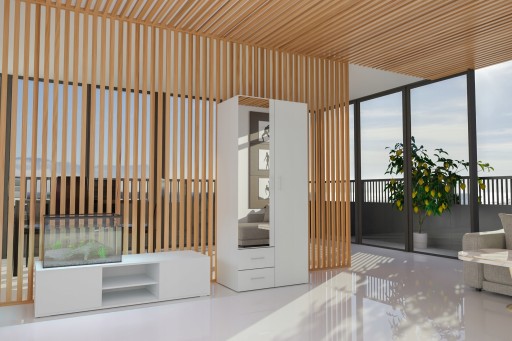 CASPIAN 3 ШКАФ С ЗЕРКАЛОМ - БЕЛЫЙ - НАКЛОННЫЙ ШКАФ С ЯЩИКАМИ
