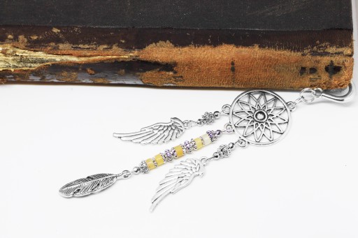Elegancka zakładka do książki z zawieszką w kształcie łapacz snów z dodatkiem srebrnego hematytu i żółtego awenturynu.