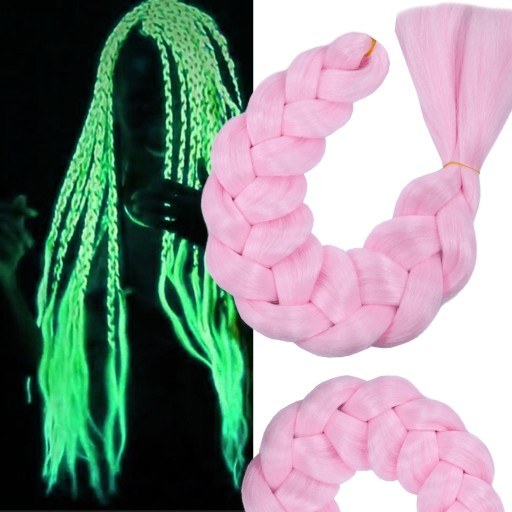 WŁOSY SYNTETYCZNE ŚWIECĄCE W CIEMNOŚCI Różowe DOCZEPIANE WARKOCZYKI PINK