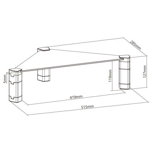 Elegancki blat ze szkła hartowanego o grubości 5 mm zapewnia wytrzymałość dla urządzeń o wadze do 20 kg.